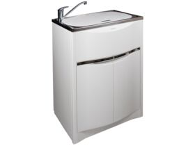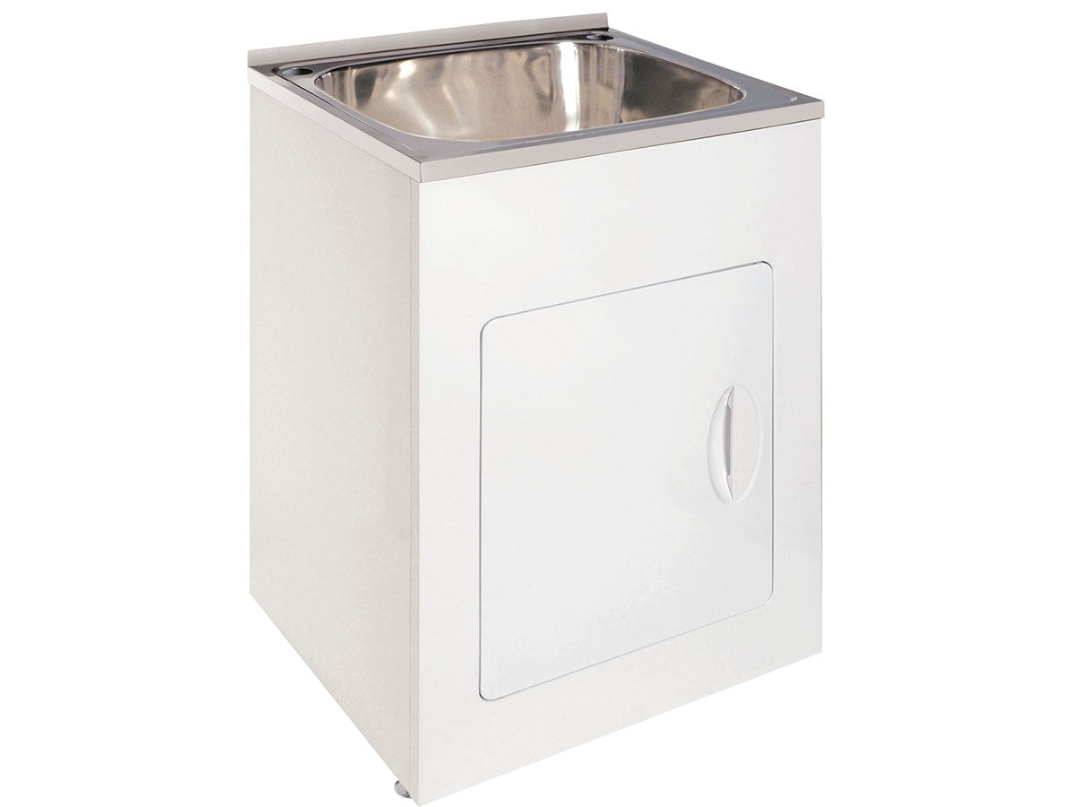 Milena Contour Laundry Trough & Cabinet 45L Stainless Steel Bowl Polymer Cabinet White